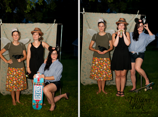 A week ago we had a celebration that several of you may remember! There was art by local artist April Miller, which is super awesome! Catering was done by the amazing Chow Girls! They actually catered our wedding! Tim baked the cookies. There were a few giveaways: vegetables from the garden, a wine/candle/chocolate bar combo and a portrait session! We were also celebrating my photos being published in Minnesota Bride magazine and my new website and logo designed by Jesse Hughes at Creature Works Labs! It was a great turn out and we had some fun out back with the “photo-booth”. This was the first time trying out the “booth” so we realize some changes need to be made. Like, there are people that are taller than us, so it should be higher! I will also admit that there was some Prosecco involved in my evening so the focus on some of the photos is not the greatest! Ooops! And the neighbors motion light kept turning on and off so it was nearly impossible to control the lighting situation! Oh well, I think people still enjoyed themselves anyway! I hope to do it again next year with new things to celebrate! The only regret is that I didn’t get any photos of the wonderful food! People ate it so quickly!